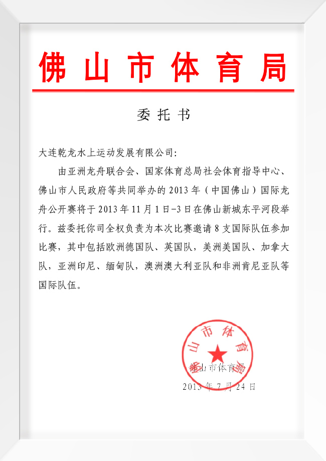 近几年,我们参与了世界龙舟锦标赛、世界龙舟俱乐部锦标赛等国际赛事的器材竞标,乾龙冠军龙舟以精湛的工艺,完美的性能,顺利通过各项指标的严格测试,得到大赛组委会的认可。Champion龙舟先后被选用为2005捷克欧洲龙舟锦标赛,2006多伦多第五届世界龙舟俱乐部锦标赛,2007年悉尼第八届世界龙舟锦标赛,2011美国坦帕IDBF世界龙舟锦标赛, 2012年 8月诺丁汉欧洲龙舟锦标赛, 2012李锦记第八届国际龙舟联合会世界俱乐部锦标赛,2013年匈牙利赛格德IDBF世界龙舟锦标赛 ,2013德国欧洲俱乐部锦标赛等国际重要比赛的指定用船。根据国际皮划艇联合会要求设计生产了首届世界龙舟锦标赛比赛用船。在国内,冠军龙舟多次被选用为屈原杯龙舟赛比赛用船,以及全国少数民族运动会龙舟赛、四川绵阳亚洲龙舟锦标赛、第三届全国体育大会龙舟赛、日照首届(2007年)及第二届(2010年)全国水上运动会龙舟赛、2010年安徽合肥第四届全国体育大会龙舟项目,2010 中国天津 • 首届世界大学生龙舟锦标赛,2011中华龙舟大赛,中华龙舟大赛(丹灶)总决赛 (2012.12),2013汕头海湾龙舟赛等国内一流赛事的比赛用船,。为推动龙舟运动在全国乃至世界范围内的普及与发展,提供了质量一流,性价比绝佳的龙舟,及完善的服务,受到了中国龙舟协会、国际组织及用户的高度赞扬。