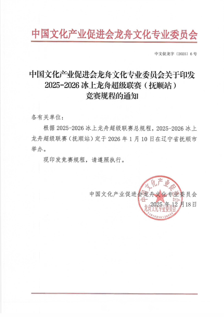 2025-2026冰上龙舟超级联赛(抚顺站)竞赛规程的通知