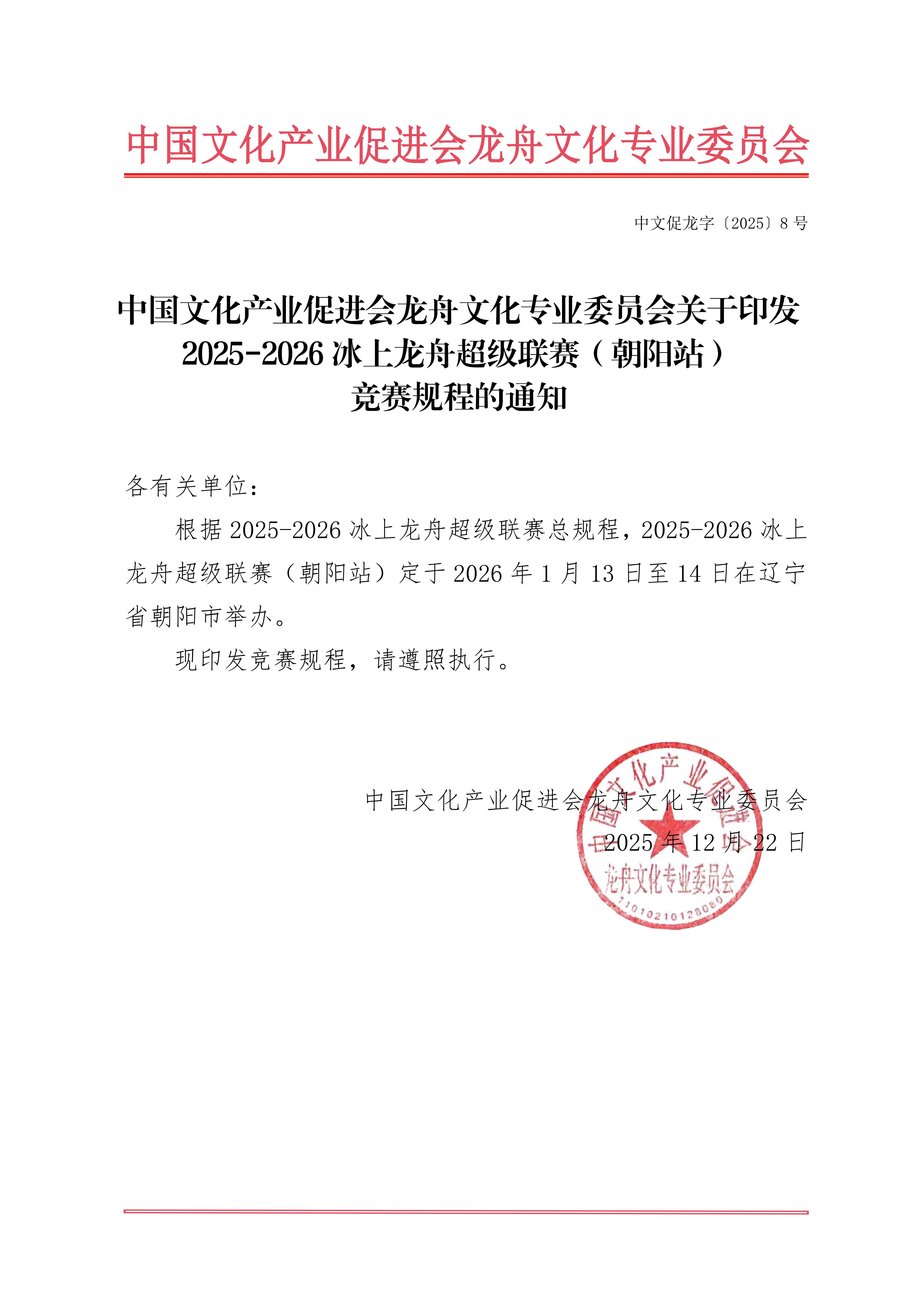 2025-2026冰上龙舟超级联赛(朝阳站)竞赛规程的通知