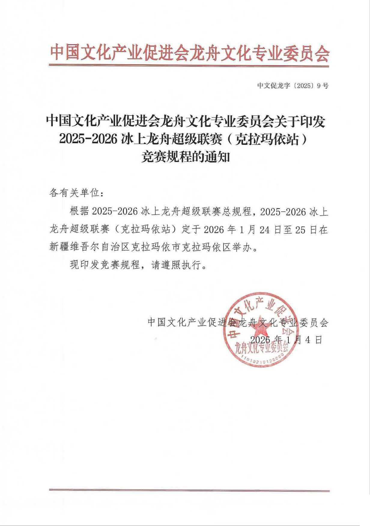 2025-2026冰上龙舟超级联赛(克拉玛依站)竞赛规程的通知