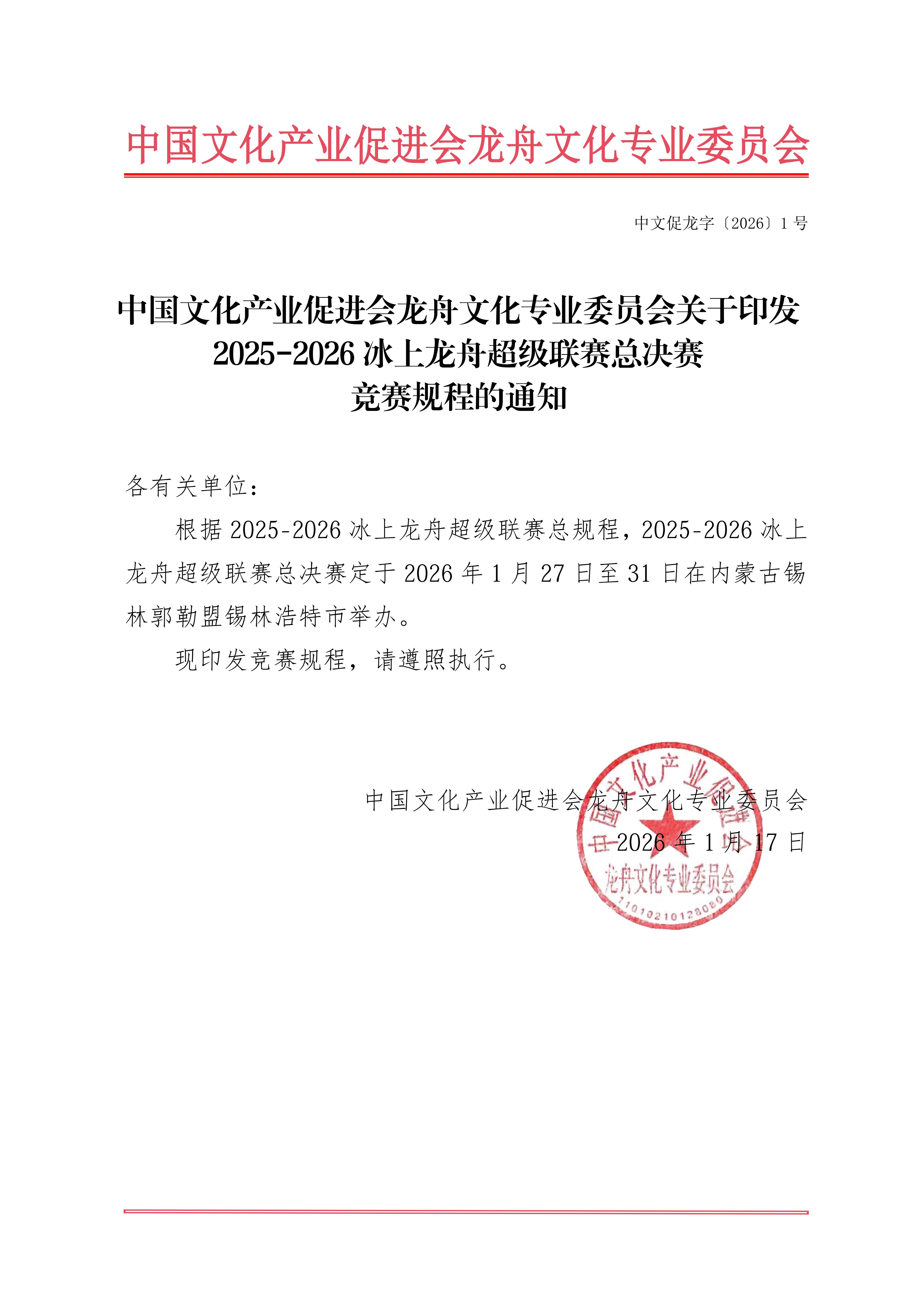2025-2026冰上龙舟超级联赛总决赛竞赛规程的通知